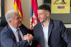 体育资讯6月20日讯 巴萨官方更新社媒动态,晒出新援霍安-加西亚的签约仪式。