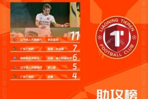 体育资讯6月23日讯 中甲第13轮已经结束数场比赛,辽宁铁人外援邦本宜裕以11次助攻领跑助攻榜,广东广州豹外援若昂-卡洛斯和陕西联合外援阿兹拉克分列第二、三位。