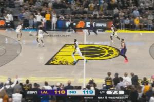 体育资讯3月27日讯 NBA常规赛,湖人120-119险胜步行者,詹姆斯上演压哨绝杀。