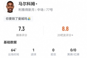 体育资讯7月1日讯 利雅得新月在世俱杯16强战2-2暂时战平曼城,马尔科姆本场数据如下: