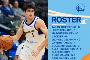 体育资讯7月1日讯 勇士官方公布夏联阵容,52号秀亚历克斯-图希和56号秀威尔-理查德领衔,骑士内线埃文-莫布里的哥哥、2023年夏联决赛MVP得主以赛亚-莫布里在列。