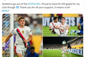 体育资讯7月1日讯 世俱杯1/8决赛,福登替补出场破门,攻入曼城生涯第100粒进球,曼城加时赛3-4不敌利雅得新月,无缘下一轮。