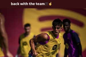 体育资讯7月16日讯 巴萨小将伯纳尔更新社媒动态,晒出自己伤愈回归球队训练的图片。
